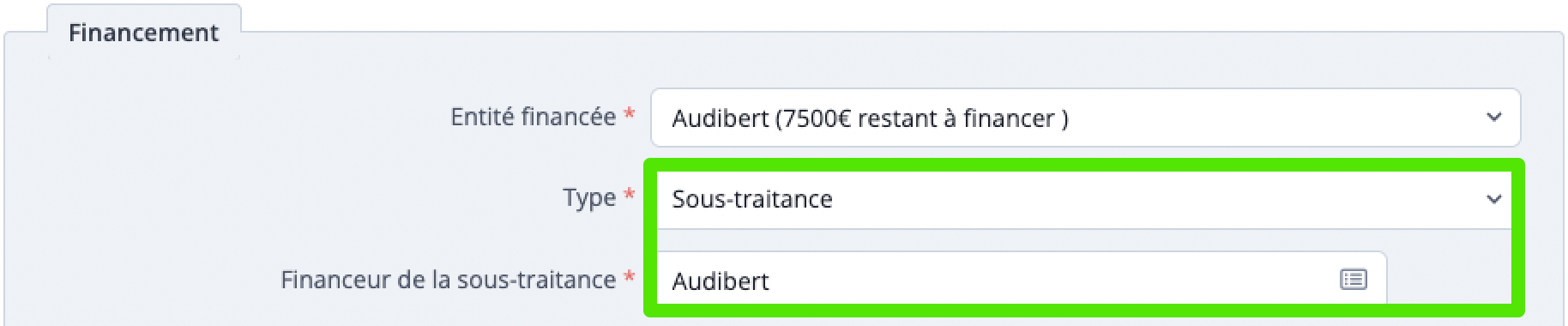 Étape #3 - Créer un Financement de type Sous-Traitance