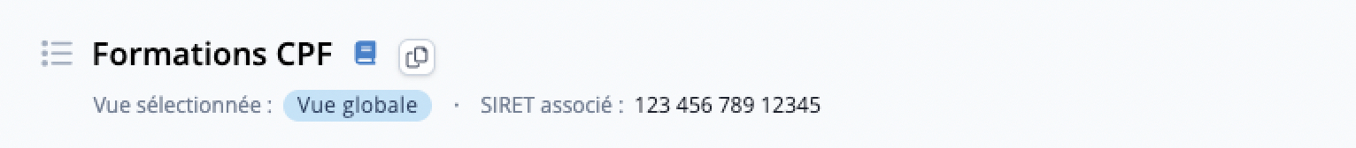 - En cas de compte multi-centres, vous retrouvez la vue sélectionnée et le SIRET associé au sous-centre.