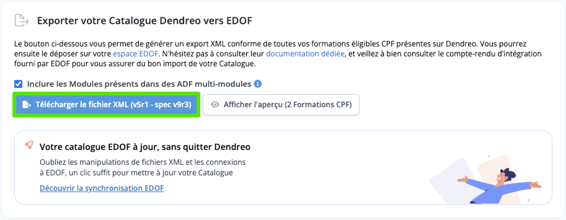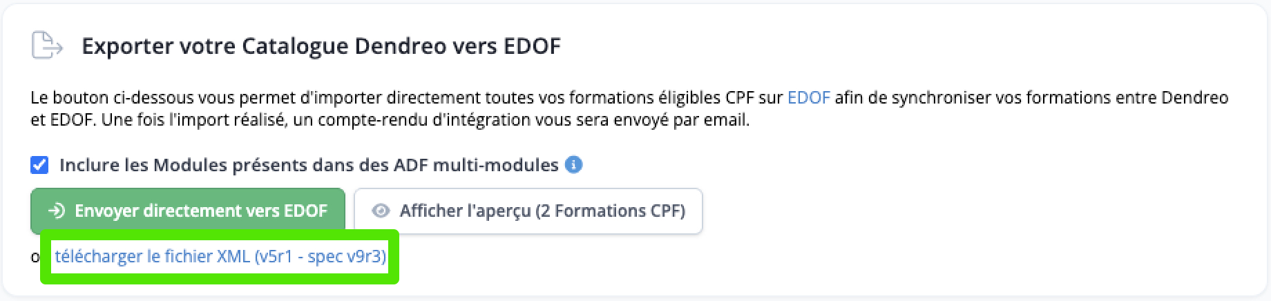 Exporter son Catalogue de Formations Dendreo vers EDOF