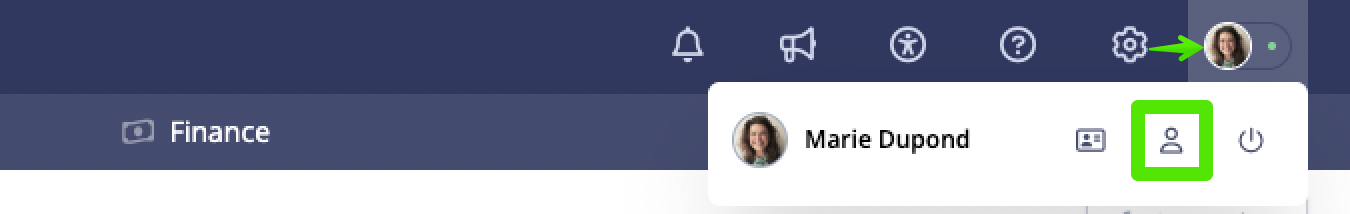 Pour accéder aux informations relatives à votre compte, cliquez sur votre photo de profil ou sur vos initiales en haut à droite de votre fenêtre, puis sur l'icône de profil.