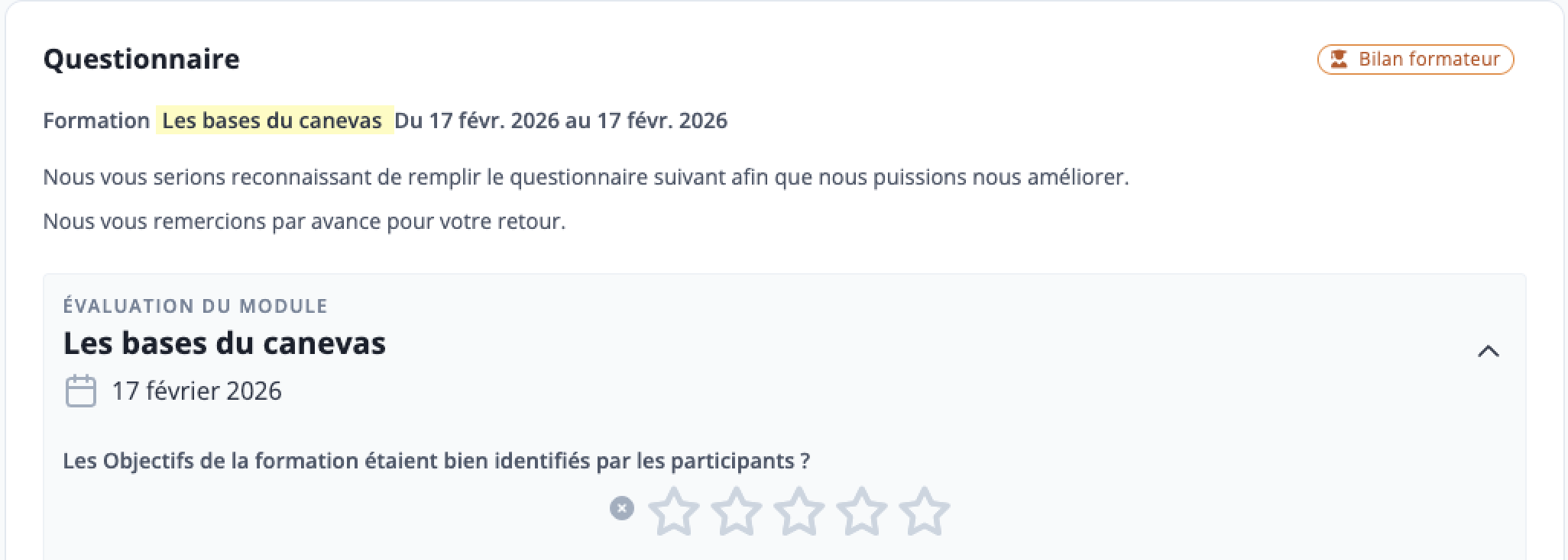 Répondre à un Questionnaire ou Bilan Formateur