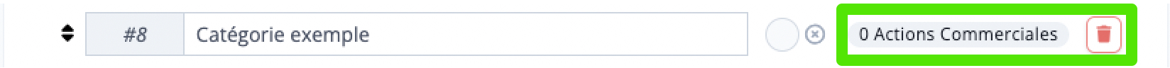 Vous pouvez supprimer une Catégorie uniquement si aucune Action commerciale n'utilise cette Catégorie.