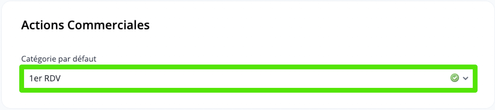 Pour configurer ces Catégories (1er RDV, Prospection, etc.), allez en configuration des Actions commerciales.