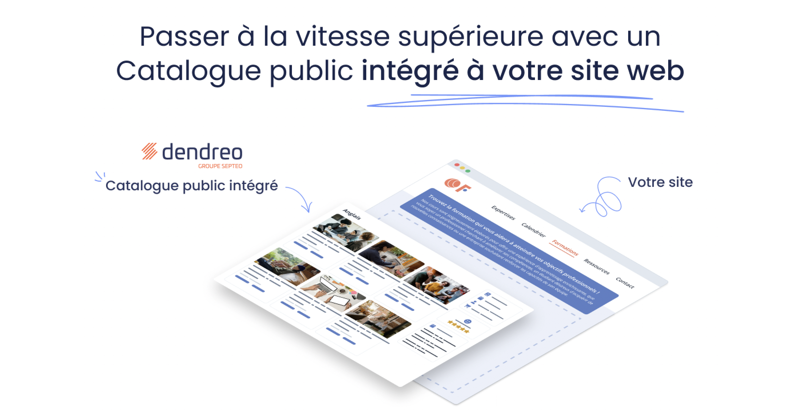 Pour la mise en place de l’intégration de votre Catalogue Public sur votre site web, la majorité des actions sont à réaliser par Dendreo. Nous nous engageons à réaliser l'intégration en quelques jours après réception des accès à votre site web.