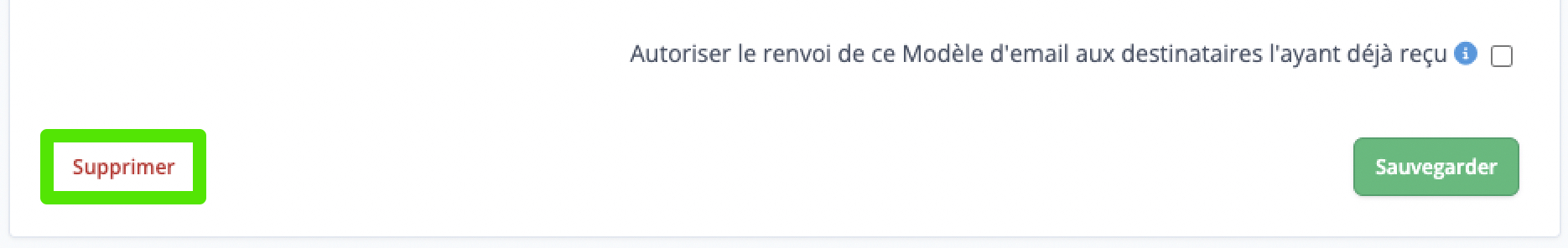 Pour gérer les relances, cochez Autoriser le renvoi de ce Modèle d’Email aux destinataires l’ayant déjà reçu depuis le Modèle d’Email.