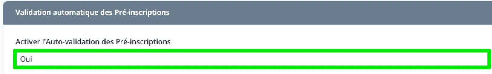 - Au champ Activer l’auto-validation des pré-inscriptions, sélectionnez Oui.