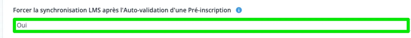 - Au champ Forcer la synchronisation LMS après l’auto-validation d’une pré-inscription, sélectionnez Oui.